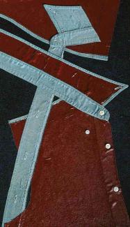 antivegetativo, smalto, stoffa, bottoni su faesite