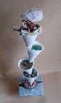 Inizia così una originale e personale ricerca che ha i suoi riferimenti principali in Burri, Afro e Baj nel panorama nazionale e in Raushemberg e Kline in quello internazionale.