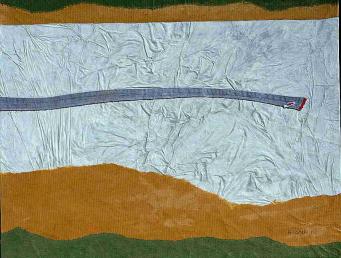 olio, smalto, stoffe su faesite