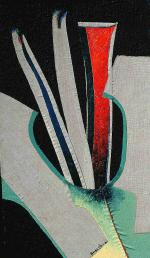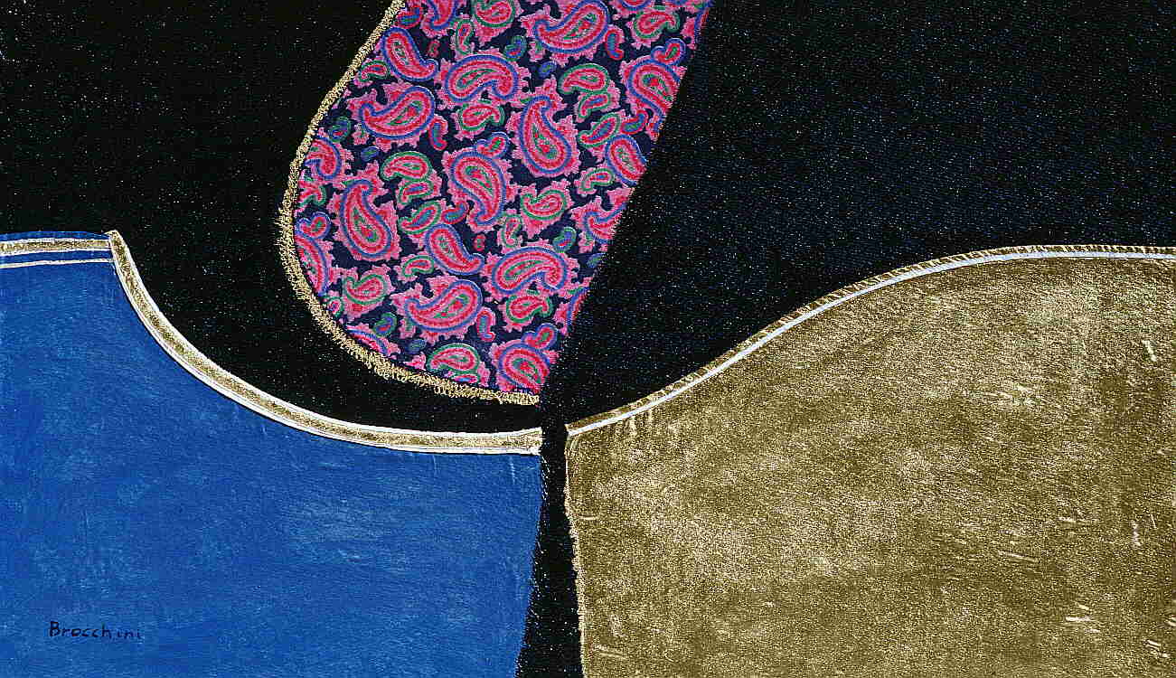 olio, smalto, tempera, stoffe su cartone